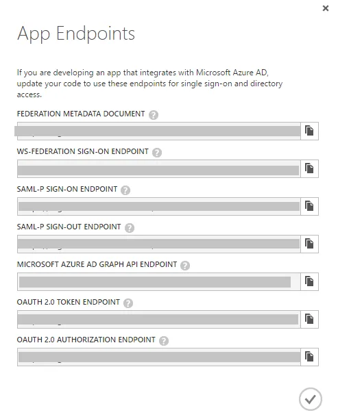 - Go to the endpoints at the top of the application registration page and use these app endpoints to set up the azure ad with your saas application.