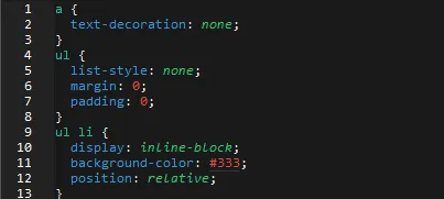The first actually relevant style is the inline-block display property on the list items to make them spread out horizontally. If you're unfamiliar with using inline-block for positioning I highly recommend reading up on it because it's an awesome alternative to floats or sometimes even flex-box. Next up we give these list items a relative position, so that the later absolutely positioned sub menu will use this as a reference point.