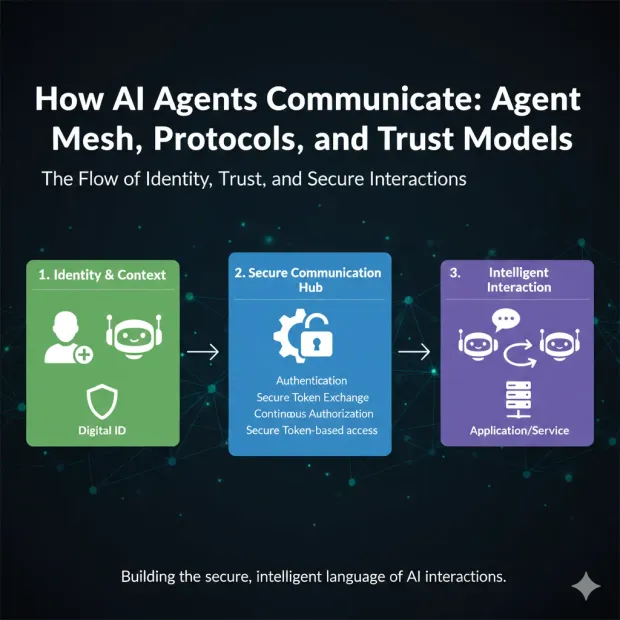 AI agents do not simply call APIs—they exchange intent, context, and delegated authority across dynamic systems. As agent ecosystems scale, communication becomes a governance and identity challenge, not just a networking concern. This guide explains how agent meshes, standardized protocols, and trust models enable safe, scalable autonomy.