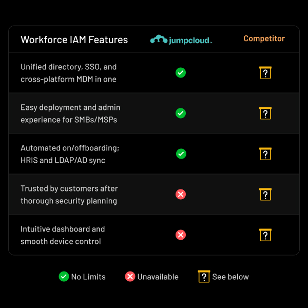 - JumpCloud's Cloud-Based Directory-as-a-Service (DaaS) makes them a fan favorite.