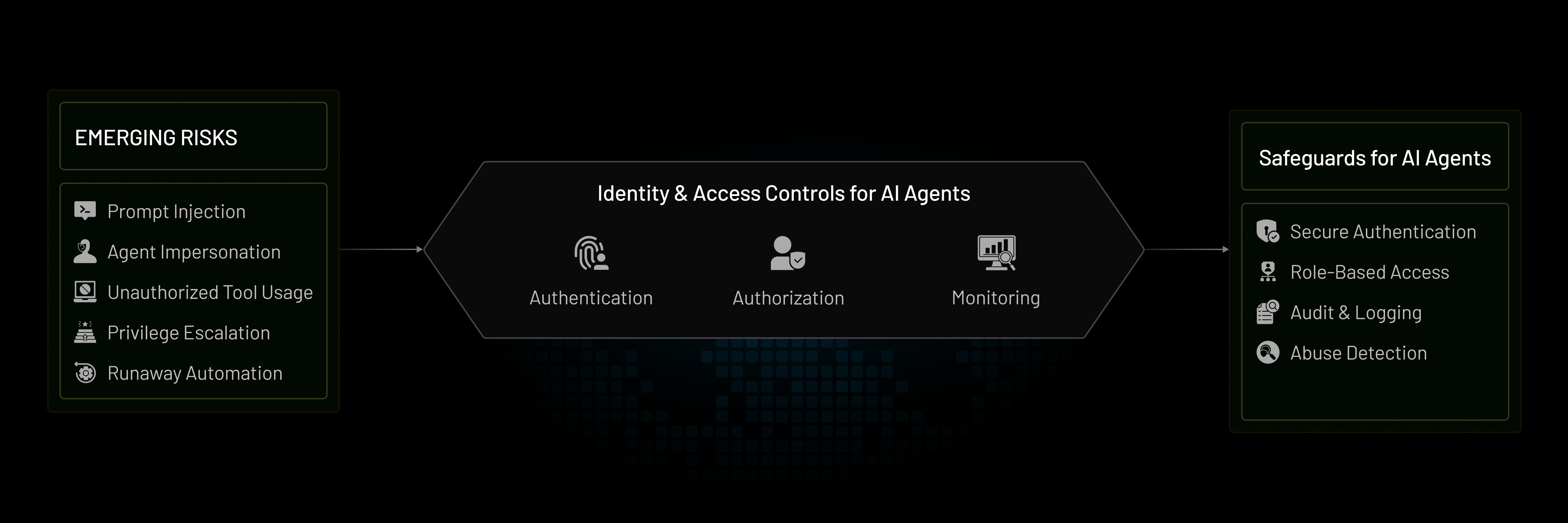 It addresses emerging risks such as prompt injection, agent impersonation, unauthorized tool usage, privilege escalation, and runaway automation. A safety-aware IAM approach ensures that agents remain accountable, constrained, and observable throughout their lifecycle.
